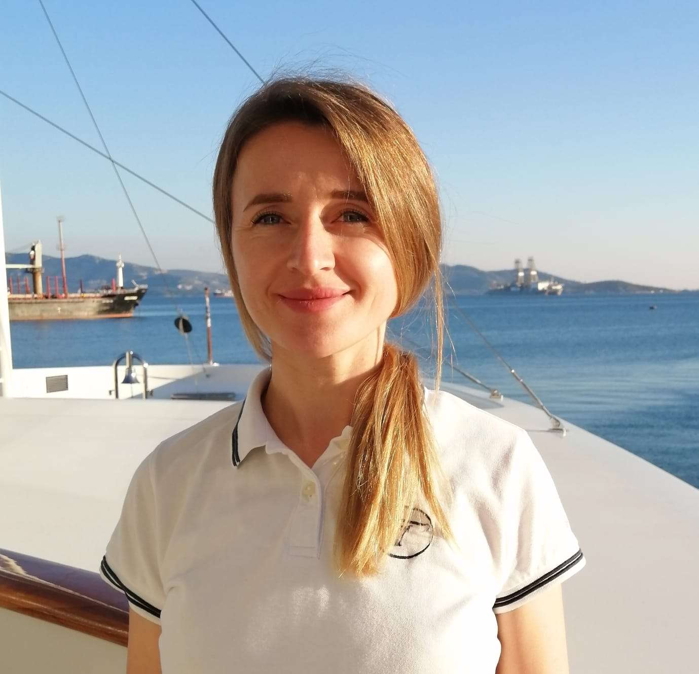 Maryna Letinska, the chief Stewardess onboard Aloia 80, born in 1989. Maryba completed her Master of Restaurant service at the maritime college and has acquired several skills, including table setting decoration, housekeeping, flower arrangement, basic cocktail making, flexibility/adaptability, and provisioning.