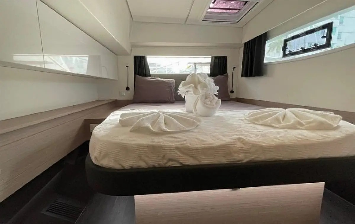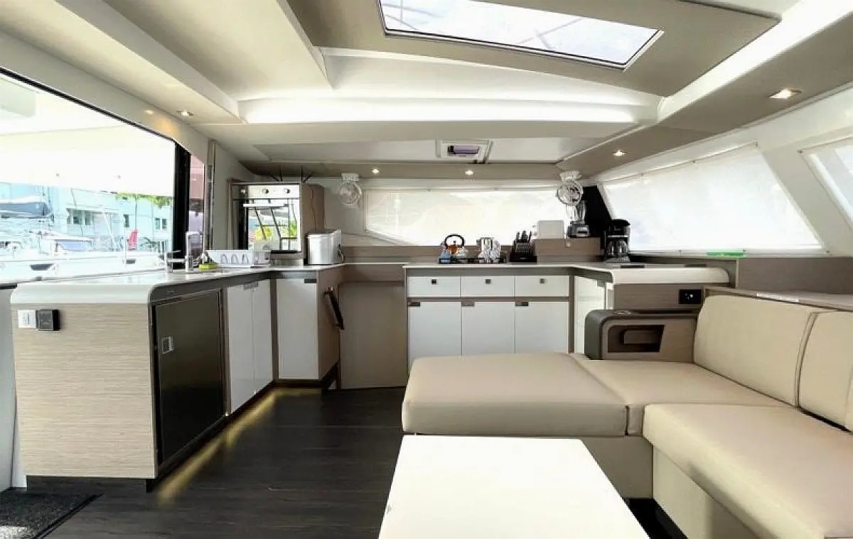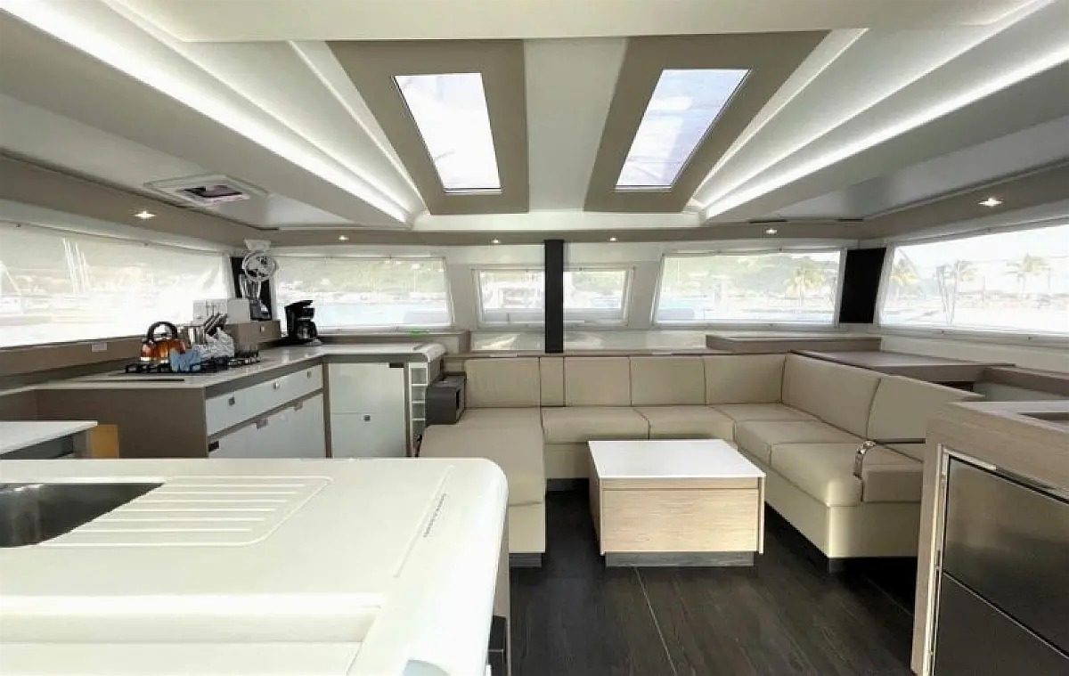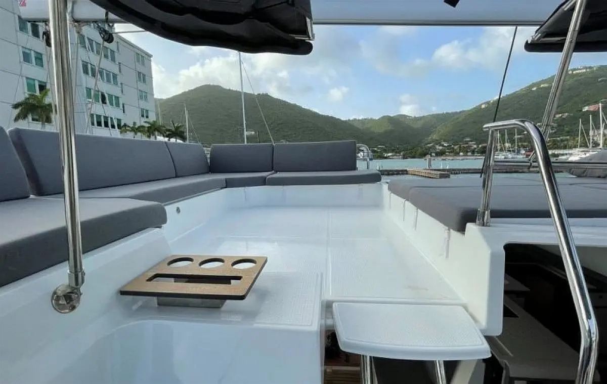 The Fountaine Pajot Elba 45 'Ogibni' is a 44 ft Catamaran operated by Conch Charters with room for 8 guests. Based out of Fort Burt Marina, British Virgin Islands, the Fountaine Pajot Elba 45 is available for bareboat charters with rates from $8,399 / week. View specifications below, then let us bring your bareboat yachting adventure to life by filling out our request form.