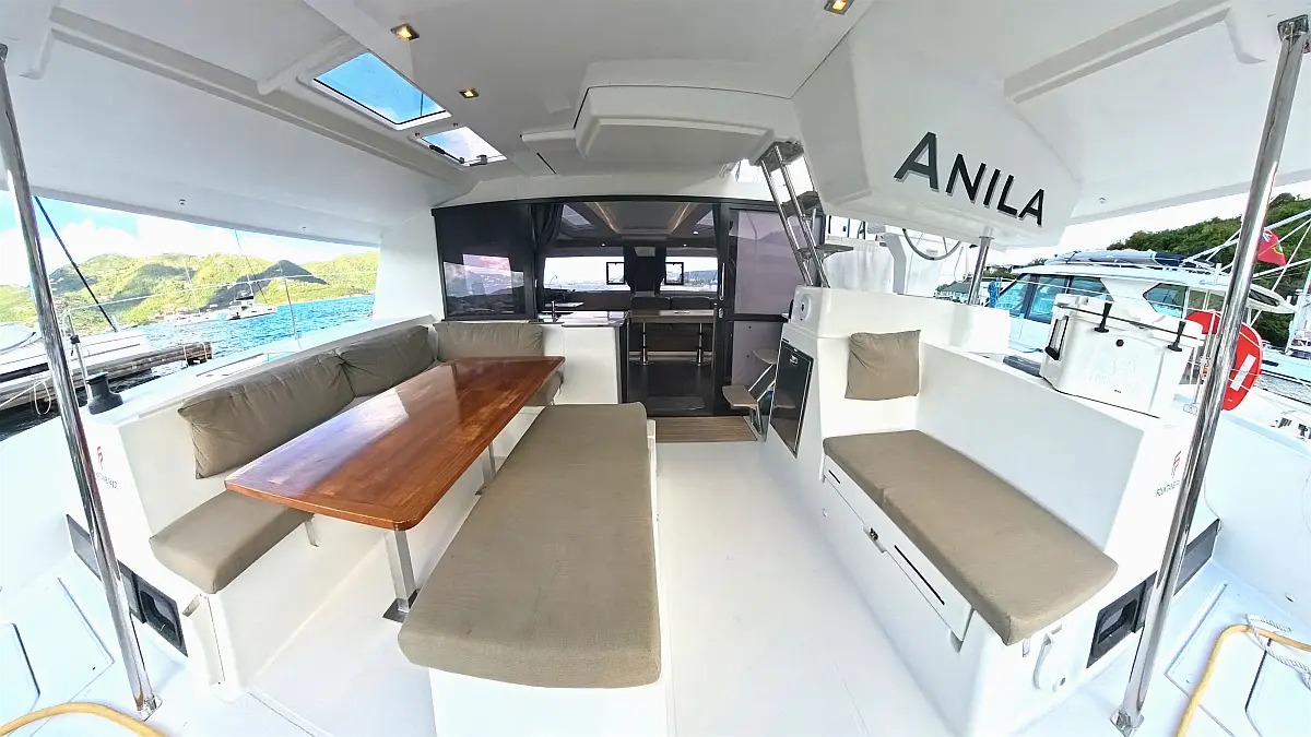 The Fountaine Pajot Helia 44 Evolution 'Anila' is a 43 ft Catamaran operated by Conch Charters with room for 6 guests. Based out of Fort Burt Marina, British Virgin Islands, the Fountaine Pajot Helia 44 Evolution is available for bareboat charters with rates from $6,599 / week. View specifications below, then let us bring your bareboat yachting adventure to life by filling out our request form.