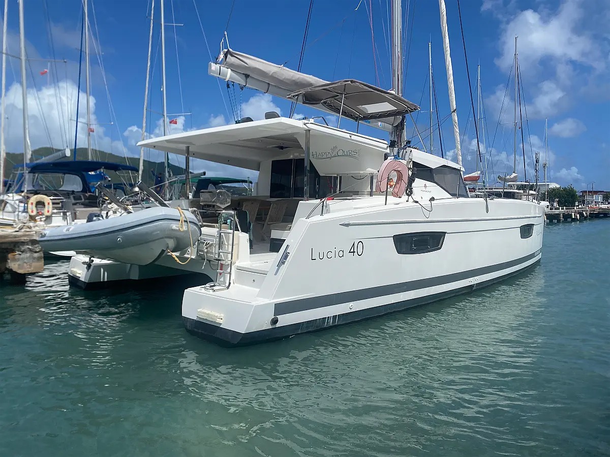 The Fountaine Pajot Lucia 4 'Happy Ours' is a 38 ft Catamaran operated by Conch Charters with room for 8 guests. Based out of Fort Burt Marina, British Virgin Islands, the Fountaine Pajot Lucia 40 is available for bareboat charters with rates from $4,999 / week. View specifications below, then let us bring your bareboat yachting adventure to life by filling out our request form.