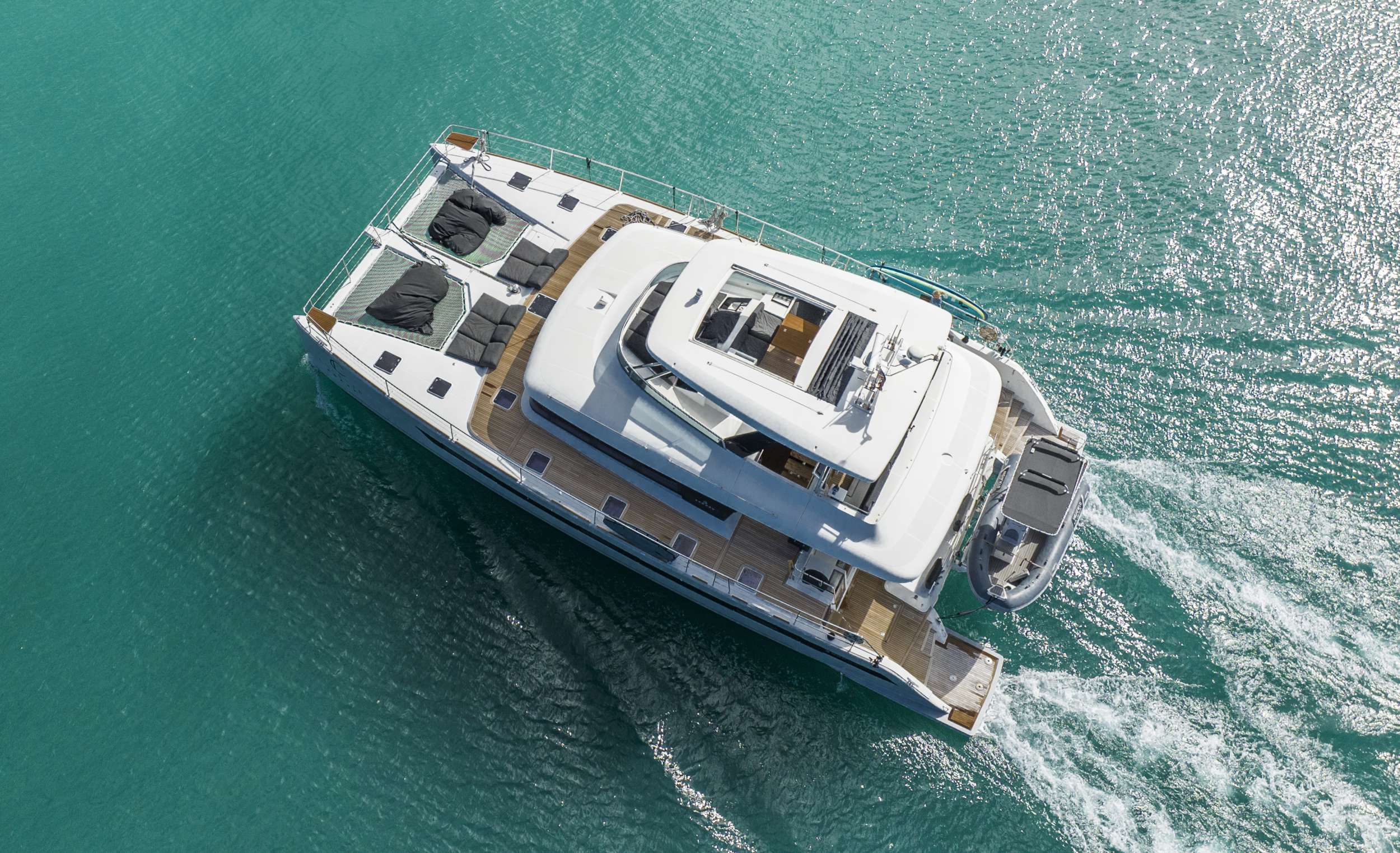 • Two cozy trampolines and lounge cushions at the bow