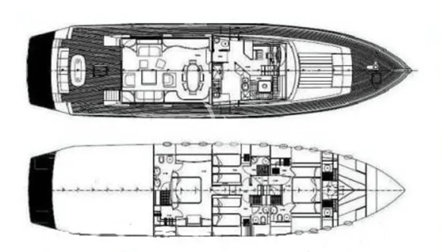The yacht has a 4 cabin configuration designed to comfortably accommodate up to 10 guests overnight in a layout comprising a Master cabin, 1 VIP stateroom, 2 twin cabins convertible into double, both with pullman beds.