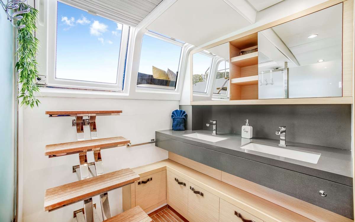 Ultra can accommodate 8 guests in 4 cabins – 1 primary cabin and 2 queen cabins and one twin with upper/lower berths ideal for kids, all ensuite. The primary cabin is well appointed with a sofa and large closets and drawers.