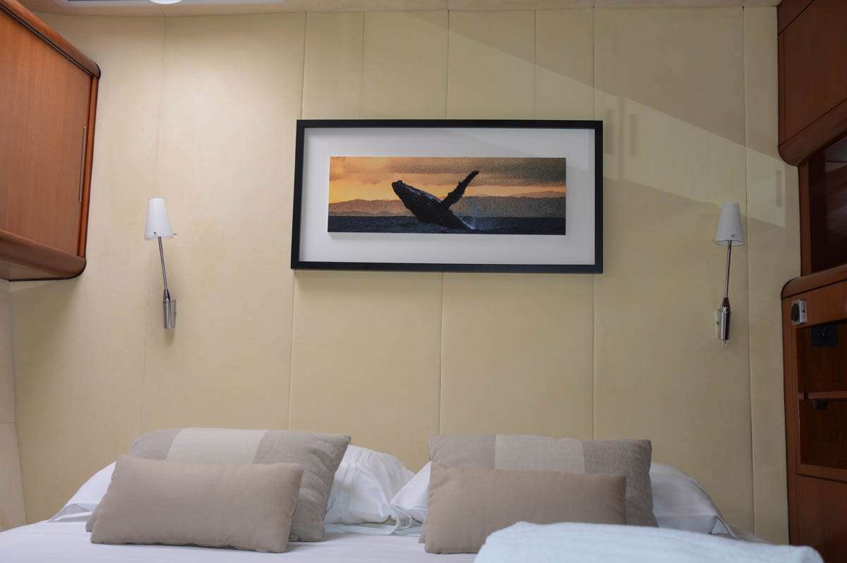 4 separated double bedded cabins (2 larger, in the rear part), each with private toilet and shower
